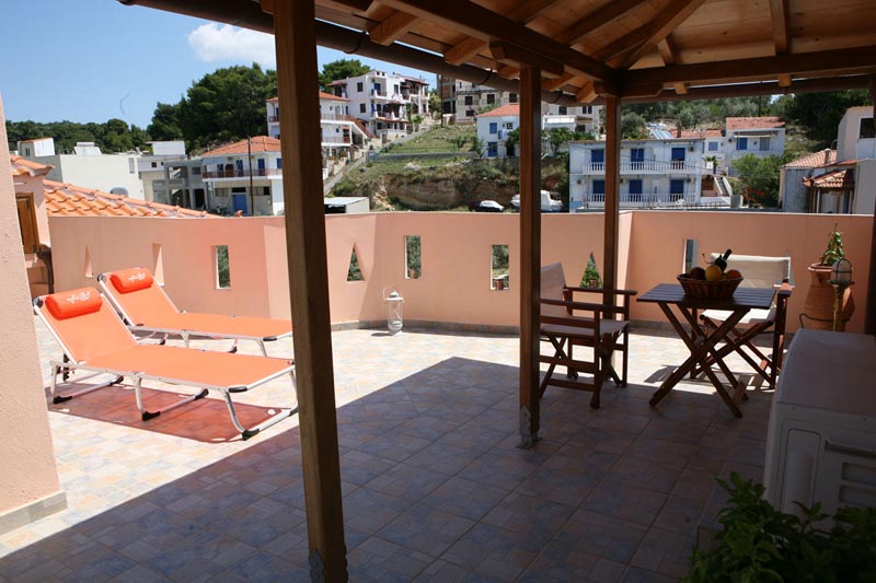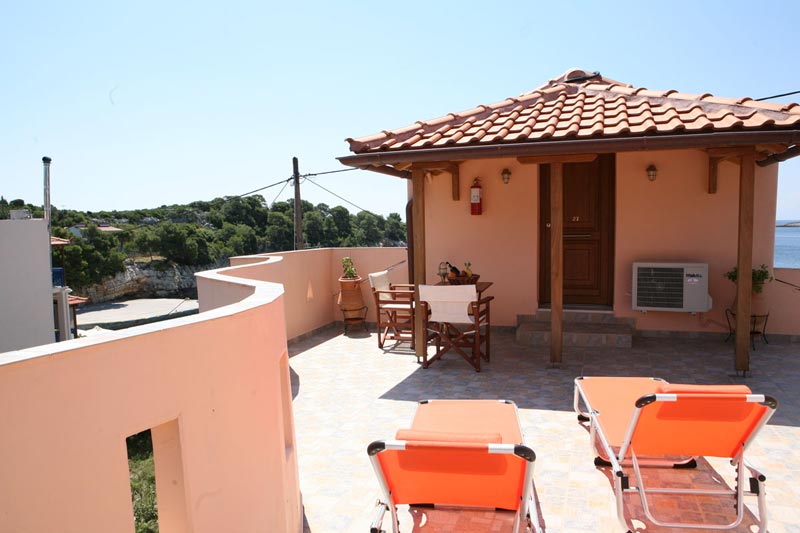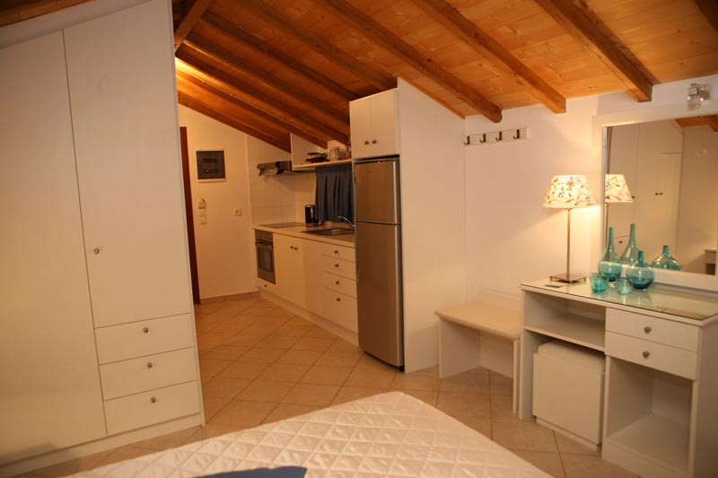 Το Λευκό studio είναι ιδανικό για ζευγάρια. Βρίσκεται στην οροφή του συγκροτήματός μας, προσφέροντας εκπληκτική θέα προς τη θάλασσα.